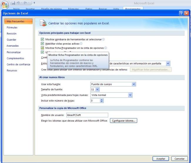 Para poder ver la ficha programador primero debes activarla desde la configuracion de Excel.