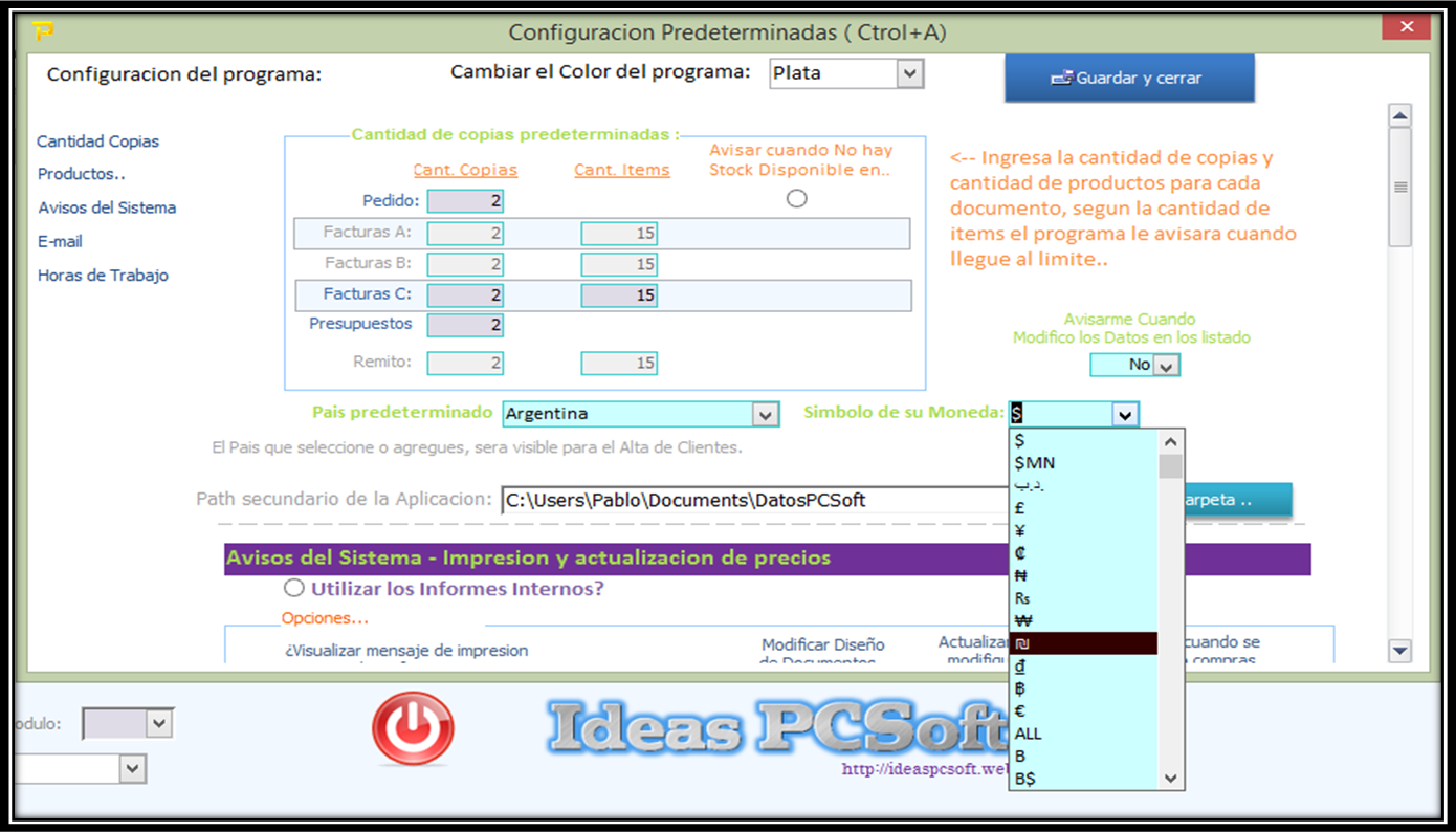 Seleccionar un cliente como predeterminado para todas las ventas a partir de fecha de seleccion del cliente, herramientas Util si se requiere usar el programa como punto de venta y realizar las ventas a Consumidor Final. (ver Videos Tutoriales)Login de usuario y contraseña , activar despues de "x" minutos sin usar el programa, es util cuando dejamos de utilizar el programa y no queremos que alguien ingrese al programa, se le preguntara por la contraseña de acceso (los minutos son aproximados) (ver Videos Tutoriales)