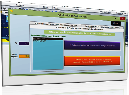 - Actualizacion de Precios por Rubros, Proveedores, SubCategorias segun porcentaje%, mas un importe a determinar o importe fijo.